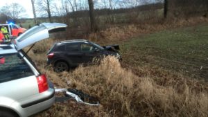 Aus noch unbekannter Ursache kam es auf der B 432 in Höhe der Biogasanlage, im Einmündungsbereich der von Oering kommenden Straße, zu einem Zusammenstoß zwischen zwei PKW.