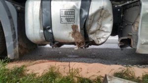 Lage: LKW streifte einen Baum, Dieseltank aufgerissen.